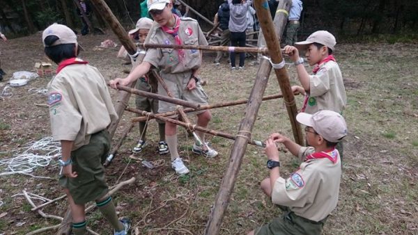 カブ隊は合戦に備えて鎧兜の作成中。